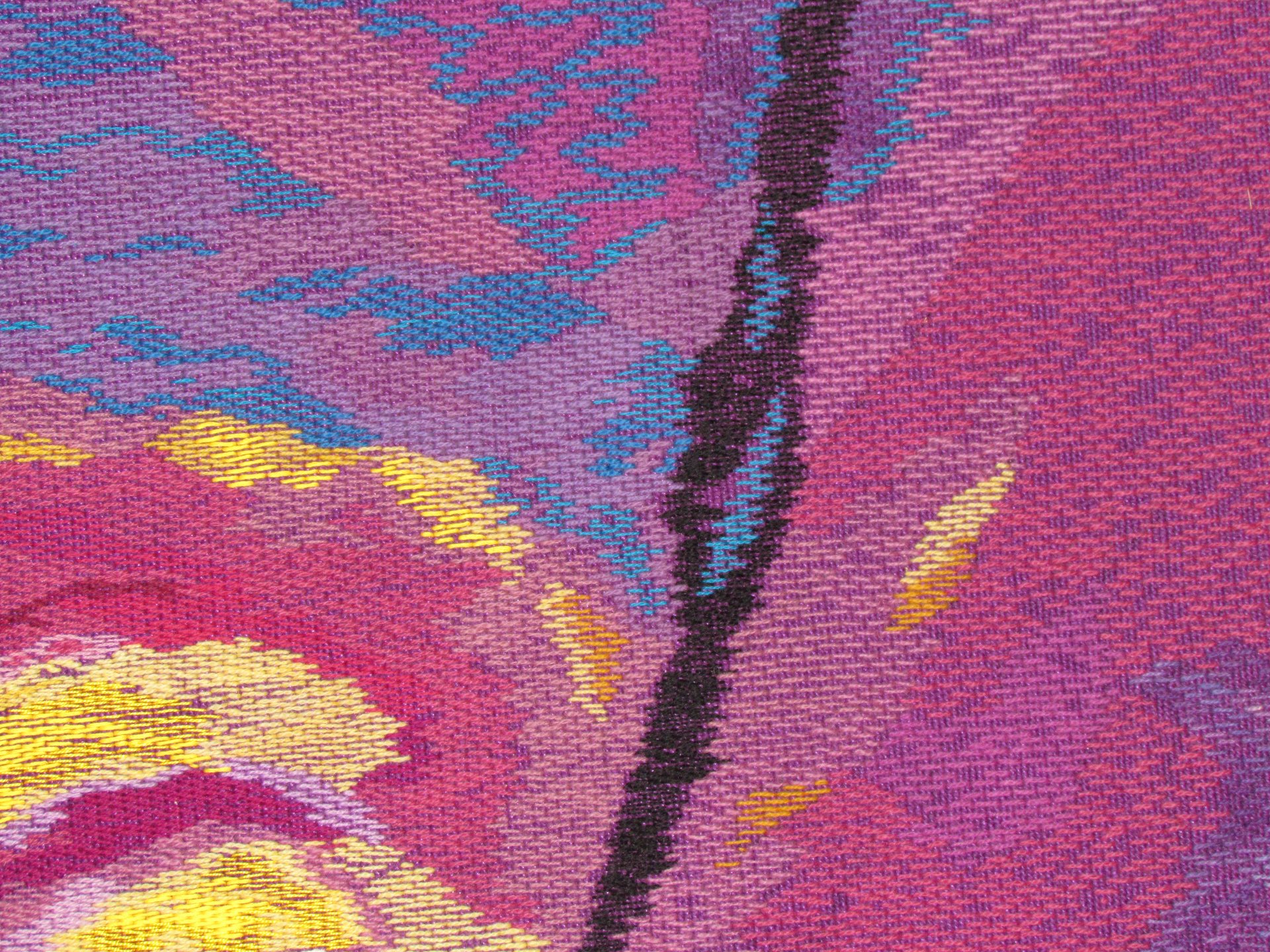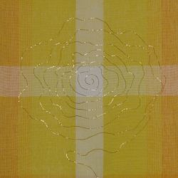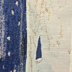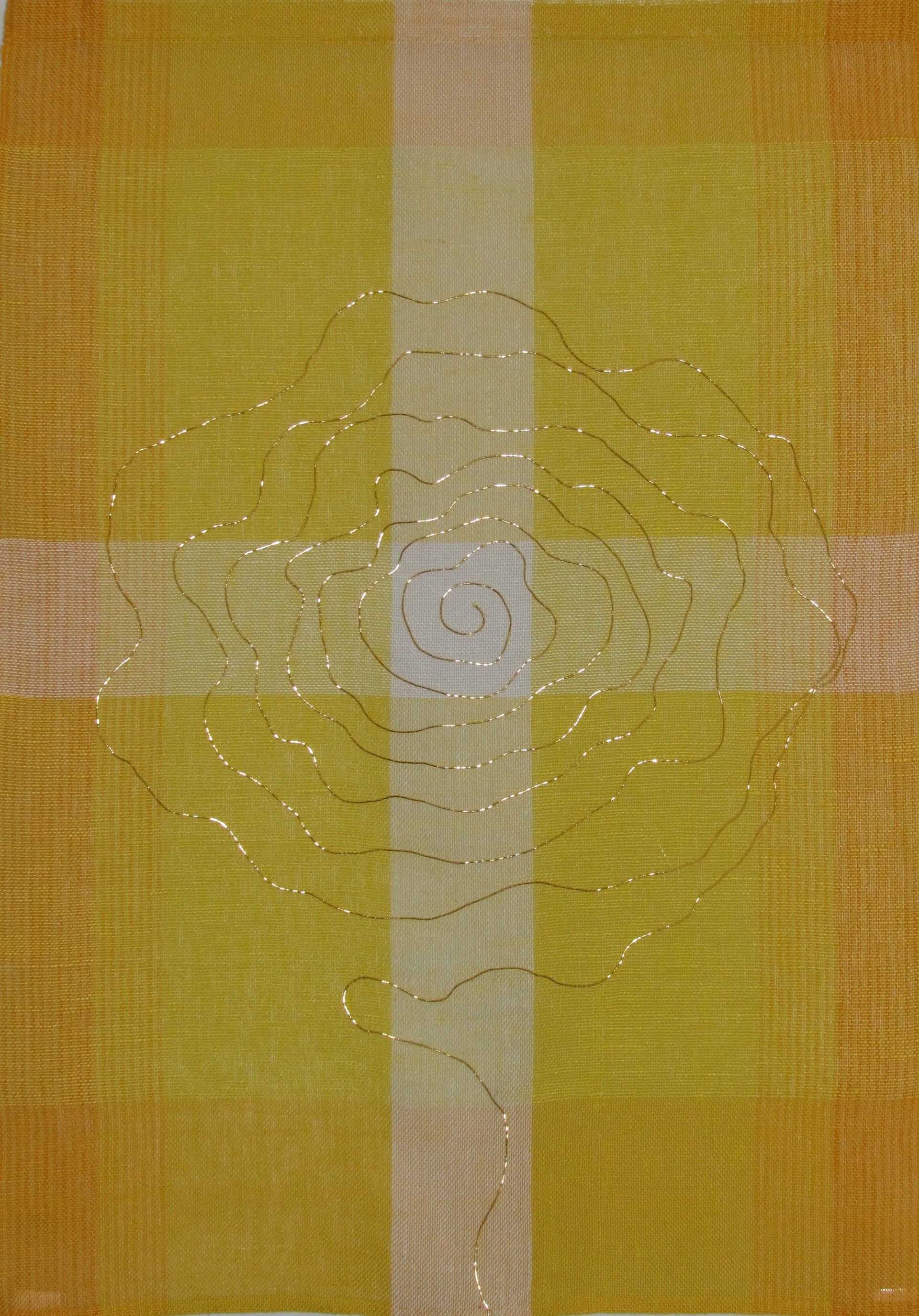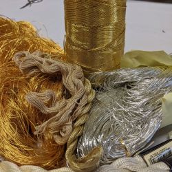 STICKEREI: freie oder bindungsbezogene Stickerei in Wolle oder Baumwolle/ Leinen und Gold auf handgewebtem Grundstoff