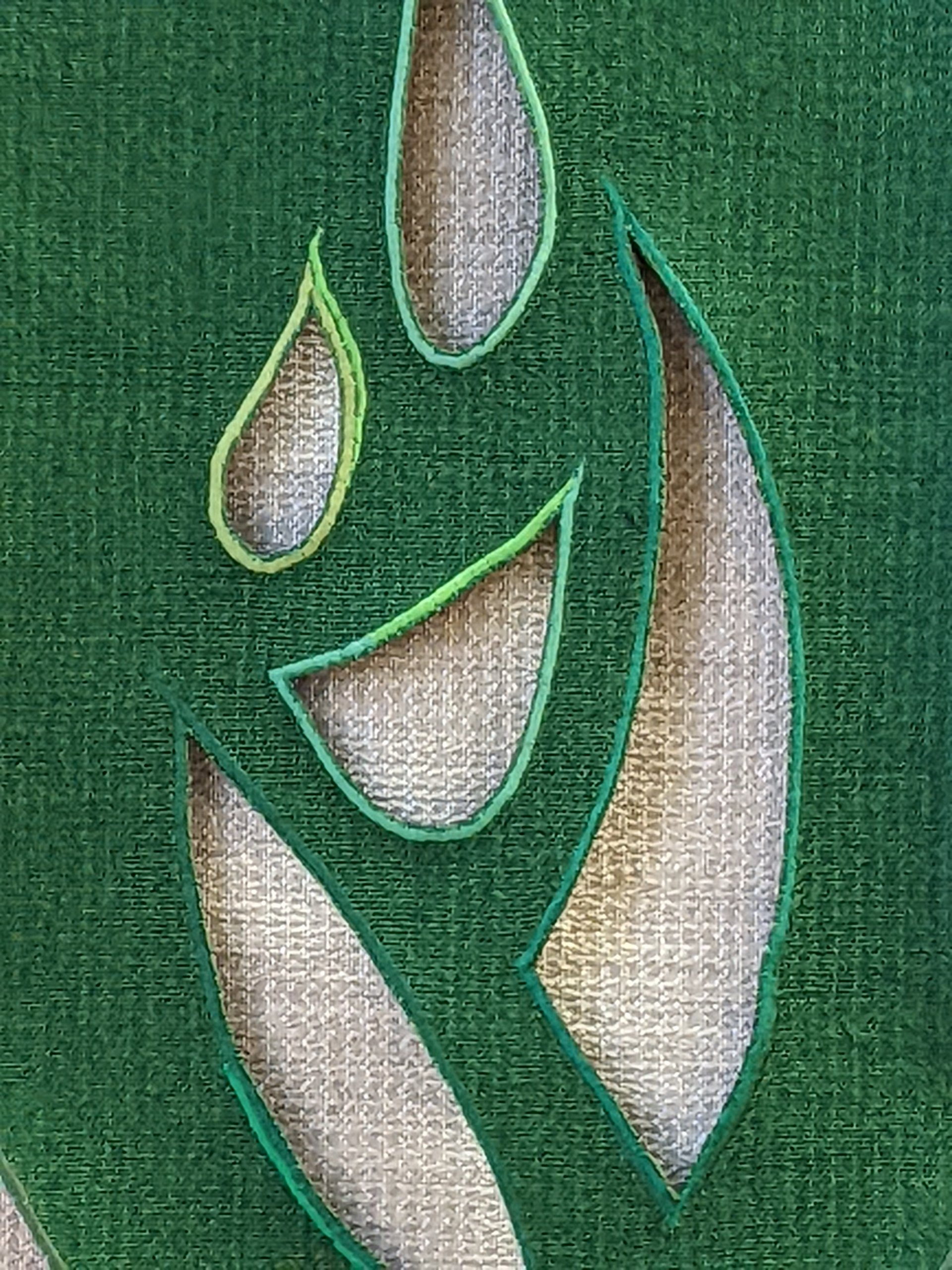APPLIKATION: verschiedenen Stoffe werden über- oder aneinander genäht und meist mit Stickerei kombiniert