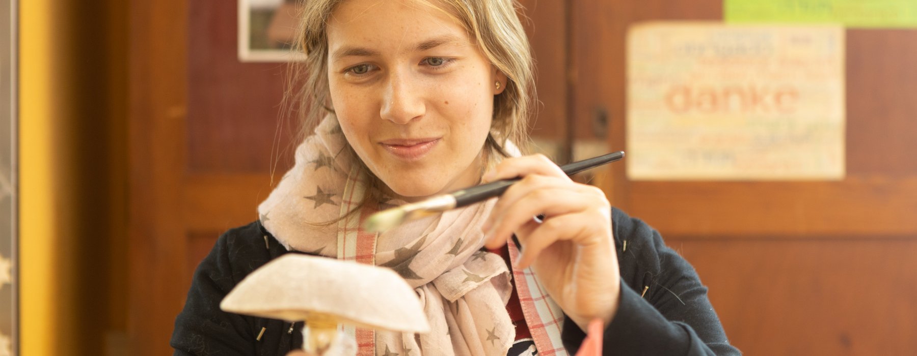 Drumherum füllt sich das Werkstattjahr mit verschiedenen Projekten wie Papierschöpfen, Gemeinschaftsfilzen oder beispielsweise Kerzenziehen im Advent.