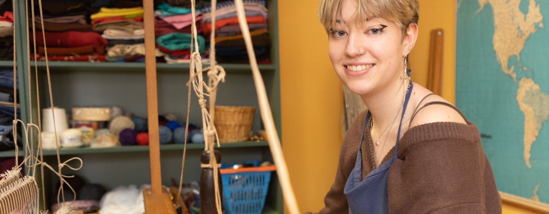 Auf unseren Leinenwebstühlen fertigen wir filigrane und transparente Fensterbilder und auch zarte Gardinen, Tischdecken, Waschlappen, Hand- und Geschirrtücher. In der Kreativwerkstatt wird genäht, gestickt und gestrickt...