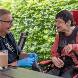 Im Haus Mecklenburg ist immer jemand für Dich da, der Dir zuhört, der Dich mag und der Dir hilft, Dich unterstützt. Im Team arbeiten Heilerziehungspfleger*innen, Altenpfleger*innen, Hauswirtschaftskräfte, Assistenten – Menschen, die gern für andere Menschen da sind.