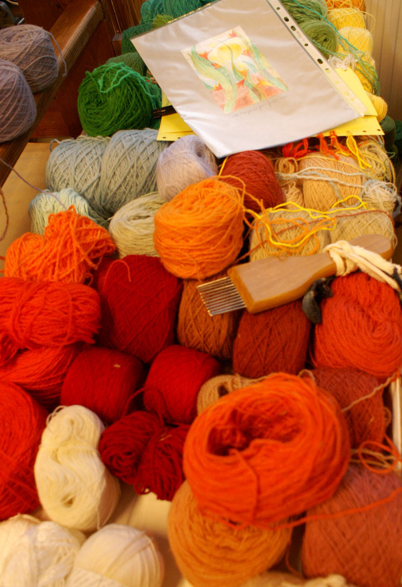 Die Handarbeit beim Weben, Sticken und Applizieren garantiert hohe Qualität und Individualität der Arbeiten. Die Wolle wird in der Werkstatt speziell eingefärbt. Die anderen Materialien werden schon farbig eingekauft. Handgewebte Stoffe werden für die Stickerei und Applikation selbst hergestellt. Die Techniken können auch miteinander kombiniert oder auf experimentelle Weise genutzt werden.