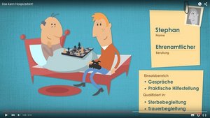Was machen eigentliche ehrenamtliche Hospizbegleiterinnen und -begleiter? Wie arbeitet die hauptamtliche Koordinatorin eines Hospizdienstes? Und wer kümmert sich noch um schwerkranke und sterbende Menschen? Der Erklärfilm des Deutschen Hospiz- und PalliativVerbands gibt einen Überblick über hospizliche und palliative Angebote.